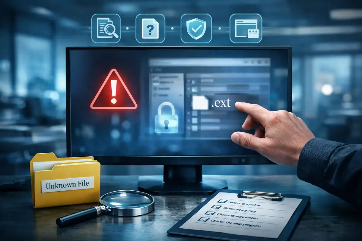 Trate o nome do ficheiro como pista, nunca como prova. Fluxo seguro: descubra a assinatura ou a extensão real. Passe por hash e escaneamento. Só então decida entre abrir, extrair, converter ou bloquear. Se o ficheiro continuar estranho, o melhor resultado pode ser simplesmente não insistir na máquina principal. Preserve a evidência intacta.